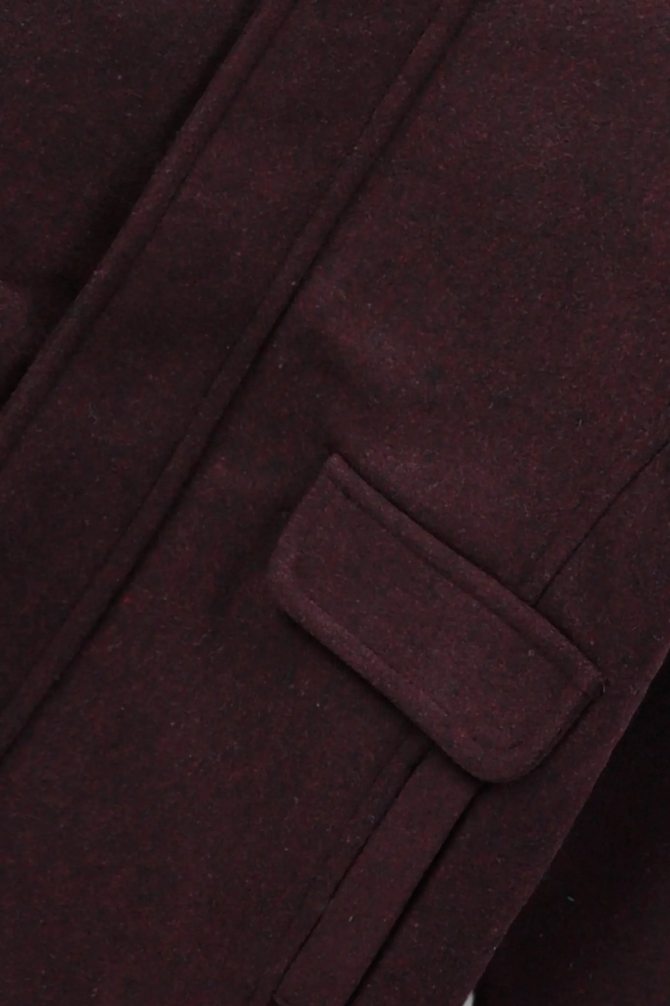 The Burgundy Felt Coat is the ultimate in modern style for boys. Crafted in luxurious felt fabric, this navy blue coat features a chic mock neck and sleek hidden zip closure for a clean, minimalist look. Two front pockets offer practicality, while the cut-and-sew panel at the back adds subtle sophistication. A stylish coat for boys who value modern fashion with an edge.
