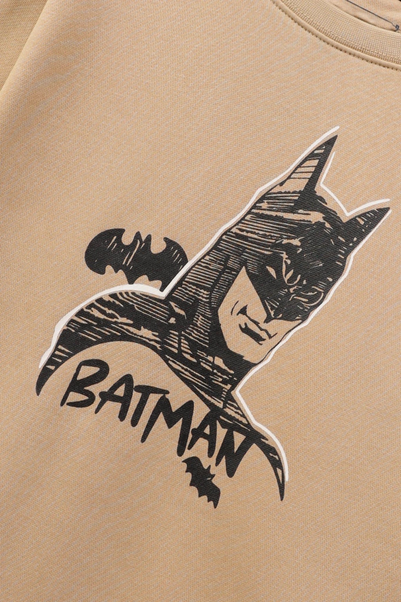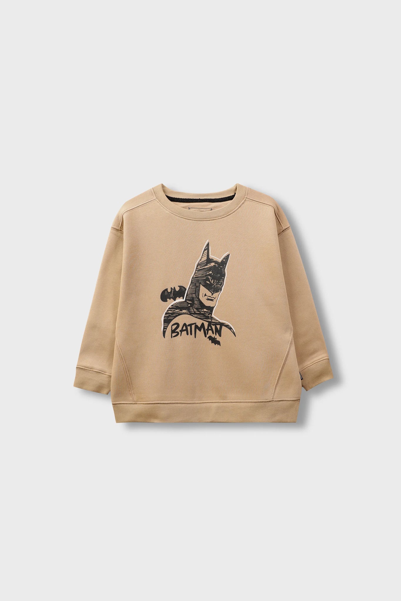 Everyday adventures meet superhero vibes in this standout skin-tone fleece sweatshirt. With a striking Batman print on the front and laid-back seams along the sleeves, this piece blends character with comfort. It’s the go-to piece for cool weather and cooler kids who wear their courage on their sleeves.