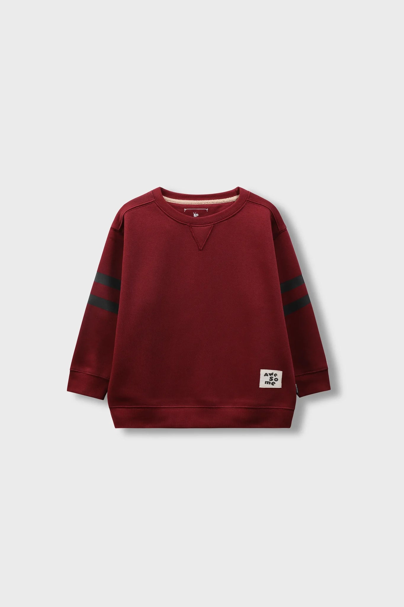 Stay snug in this rich burgundy fleece sweatshirt designed with bold black sleeve stripes and a clean crew neckline. The ribbed cuffs and hem add structure, while the patch reading Awesome adds a trendy statement. A versatile winter essential built for comfort and everyday cool.