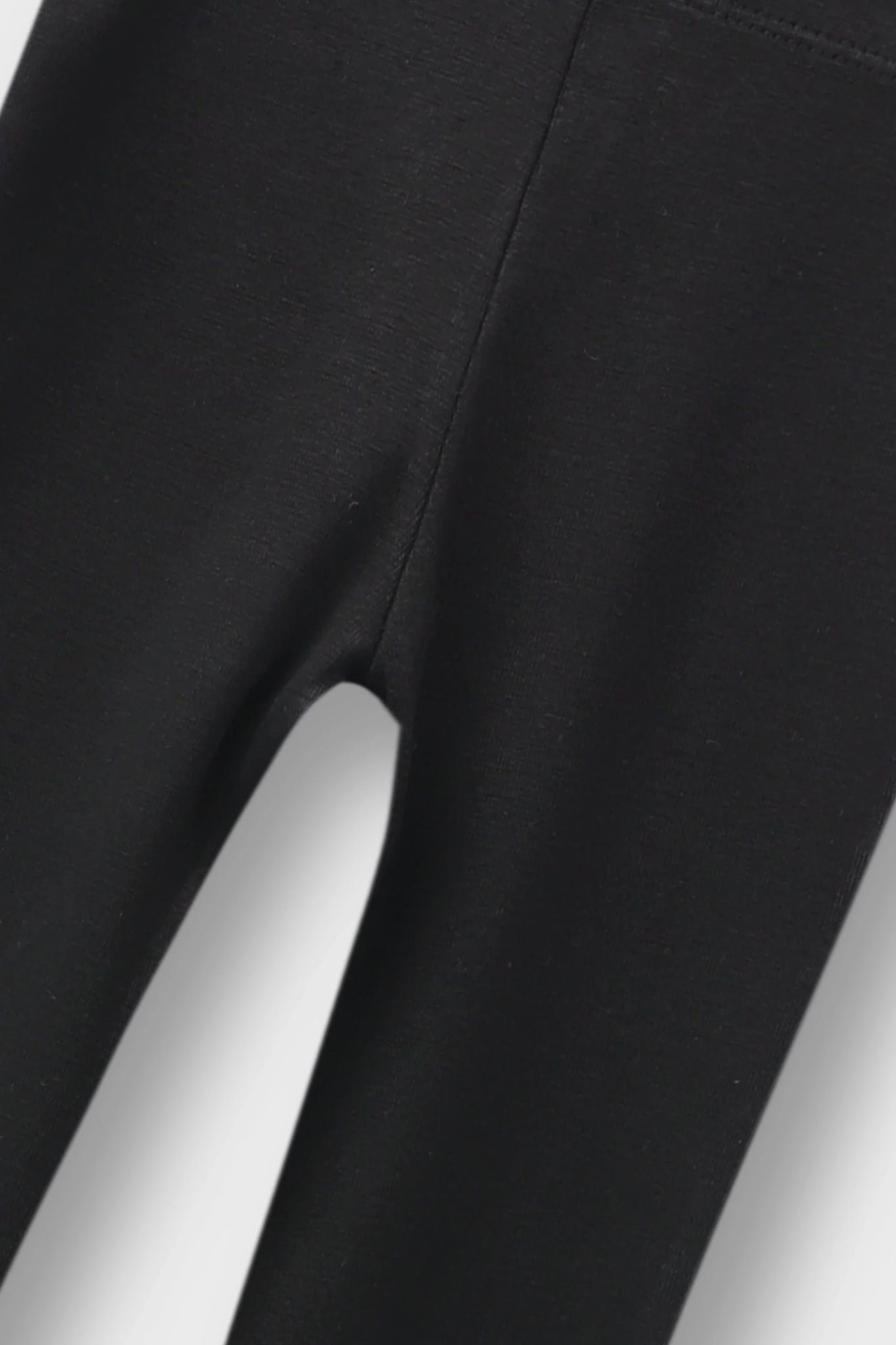 These black bell-bottom leggings for girls feature a soft, stretchable lycra rib fabric that ensures all-day comfort and style. Designed with a flared hem and slim fit through the thighs, they’re perfect for both casual and trendy looks. Pair them with tees, tops, or hoodies.